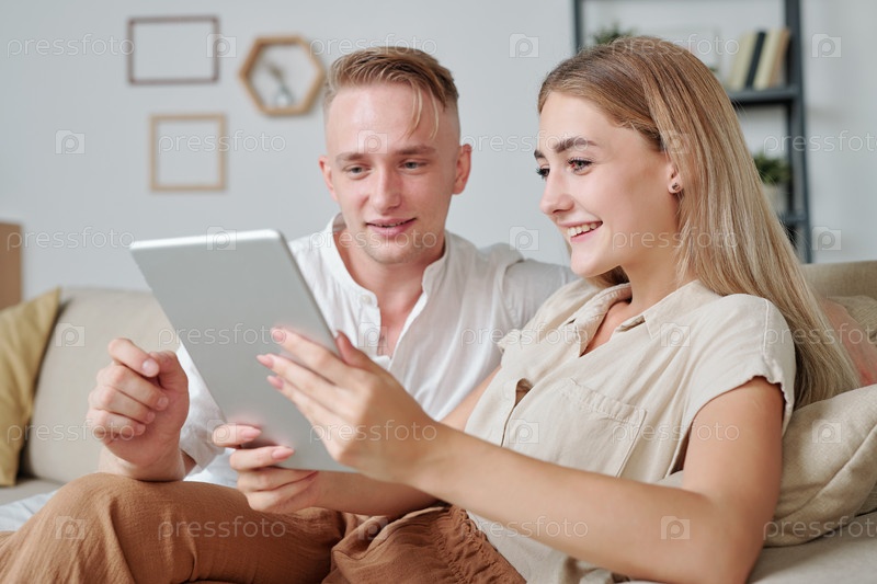 Современная молодая любящая пара использует планшет для просмотра онлайн-видео