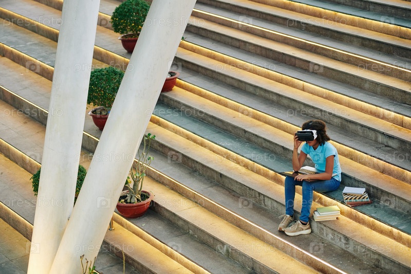 Студент с очками AR на открытом воздухе