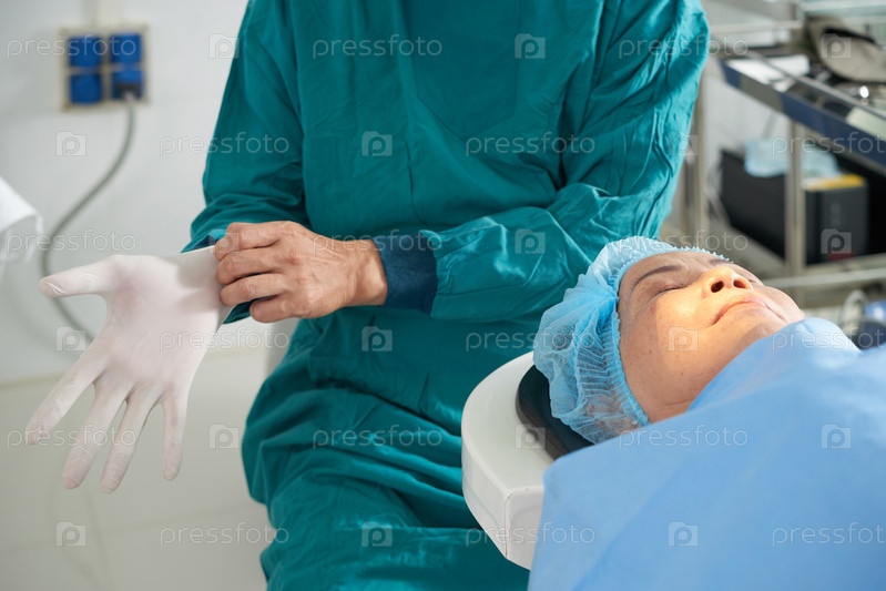 Хирург надевает перчатки