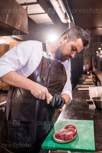 Маринованный стейк на кухне ресторана