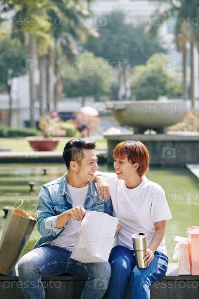Счастливая пара с покупками