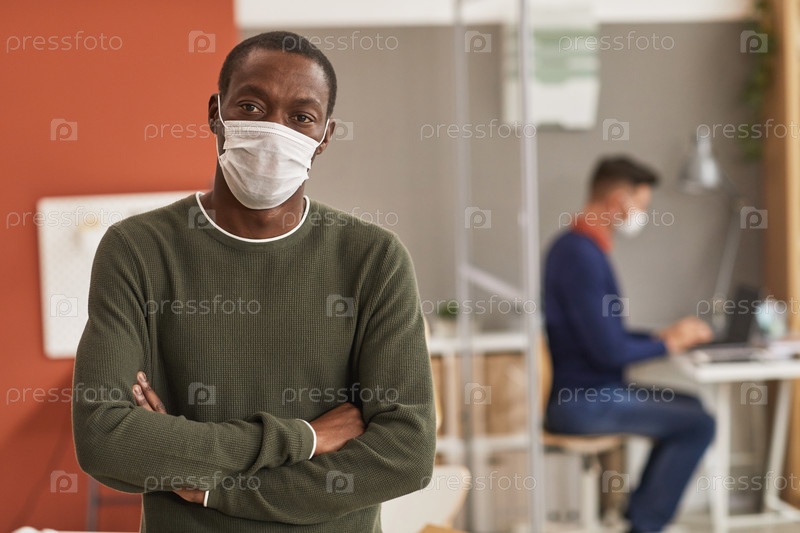 Портрет мужчины с маской в офисе