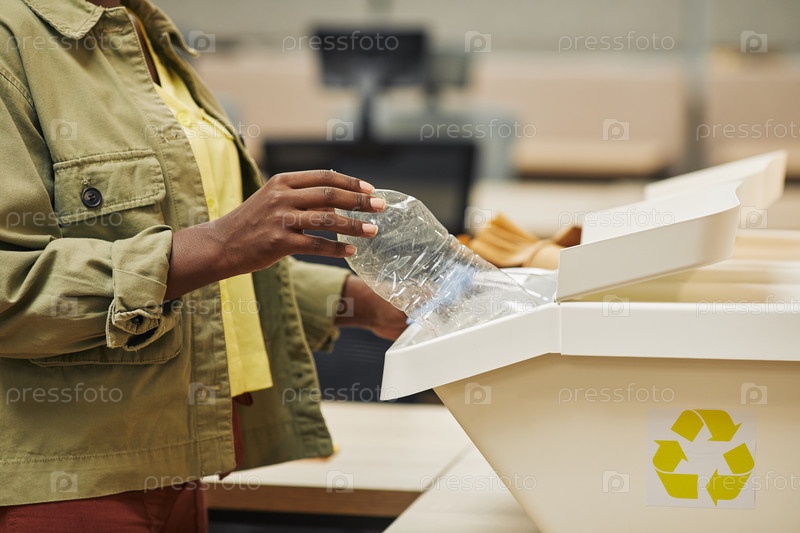 Афроамериканская женщина, перерабатывающая пластик Close Up