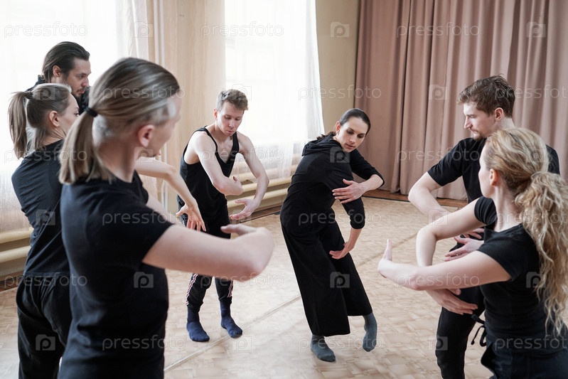 Танцевальная команда учится новым движениям