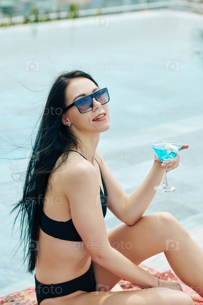 Женщина отдыхает у бассейна