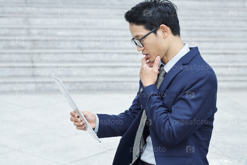 Вдумчивый предприниматель читает электронную почту