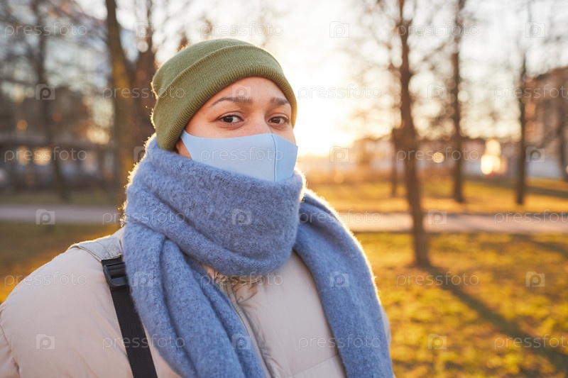 Женщина в маске на улице