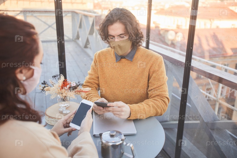 Люди с телефонами в кафе