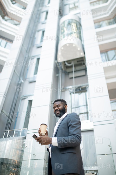 Молодой чернокожий бизнесмен со смартфоном