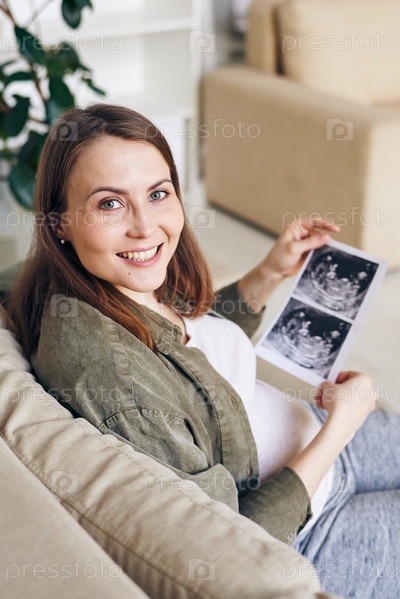 Молодая беременная женщина с ультразвуковой фотографией ребенка