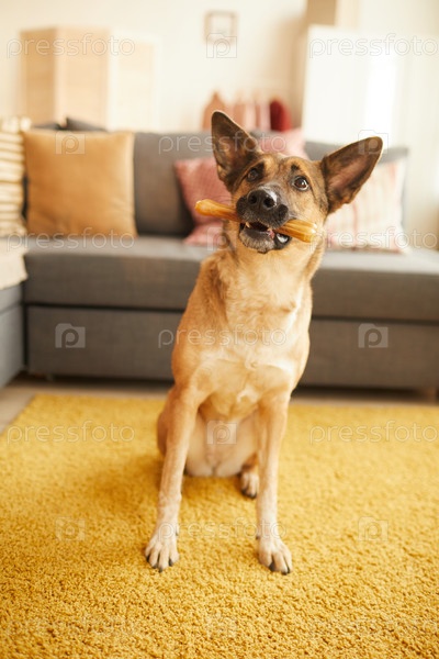 Собака играет с костью