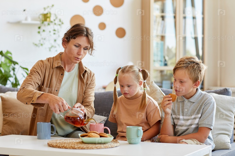 Семья наслаждается чаем