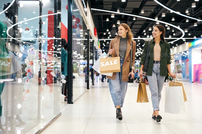 Счастливые девочки, наслаждающиеся вместе шопингом