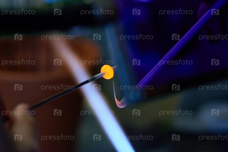 Стеклянная палочка рабочего изделия, удерживаемая мастером лампообработки во время сжигания и плавления