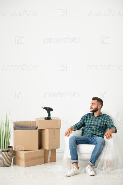 Расслабленный мужчина в новом доме
