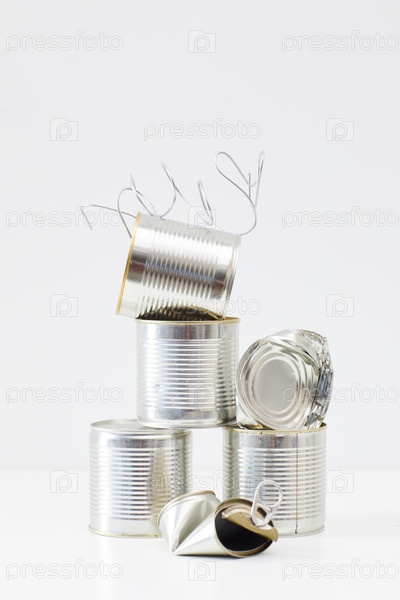 Отброшенные металлические банки на белом фоне