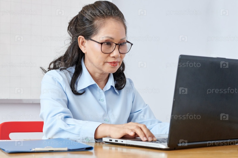 Школьный учитель работает на ноутбуке