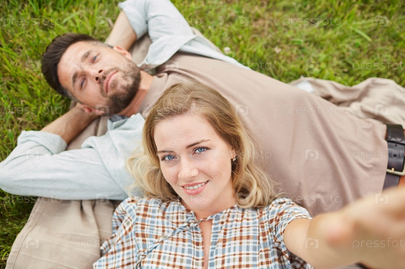 Пара делает селфи в парке POV