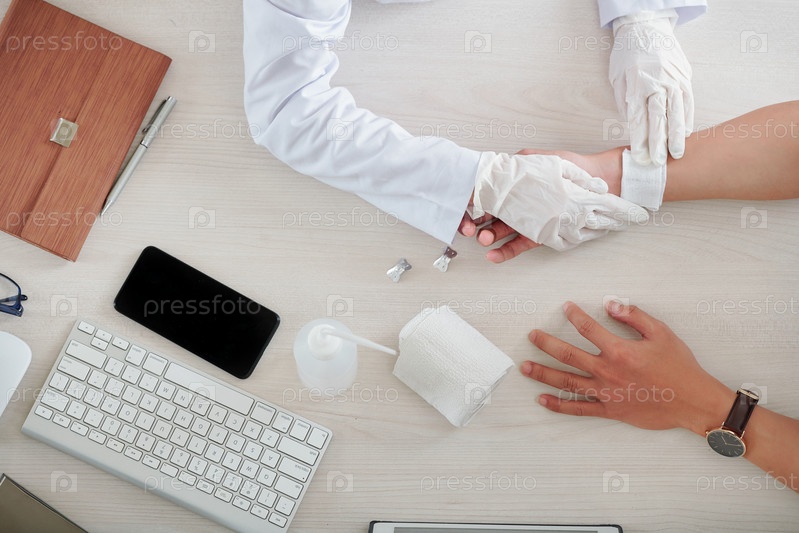 Медсестра помогает с травмированным запястьем