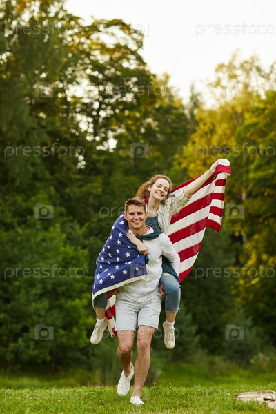 Беспечная пара с американским флагом