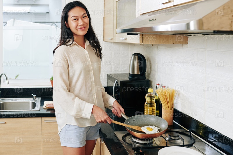 Молодая женщина готовит завтрак