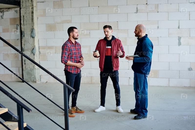 Молодой бизнесмен объясняет свой рабочий пункт, глядя на коллегу