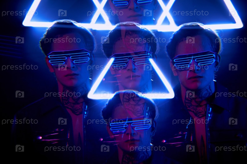 Повторяющийся образ человека в мигающих очках