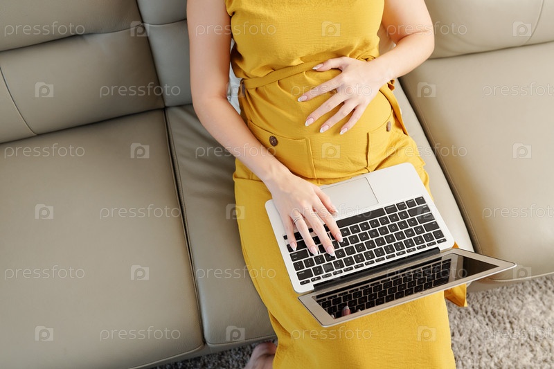 Беременная женщина покупает онлайн