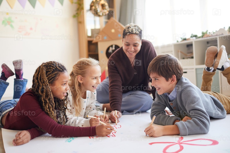 Дети наслаждаются классом искусств и ремесел