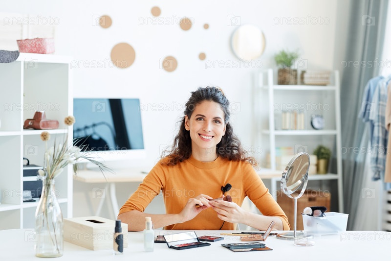 Счастливый блоггер красоты улыбается