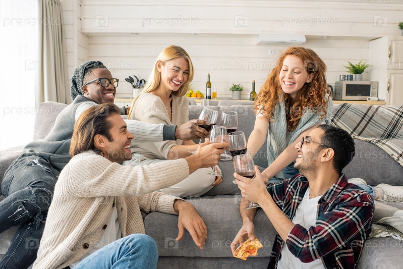 Друзья, стучащие бокалы с вином