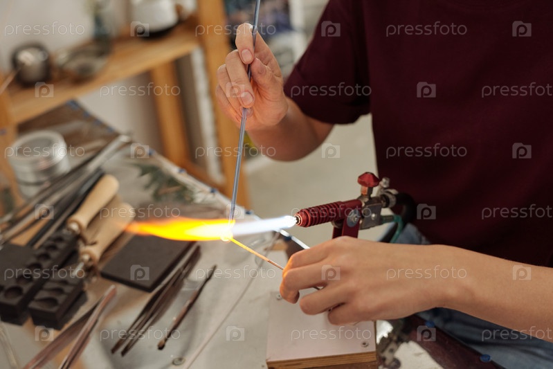 Руки молодой современной женщины-ремесленницы, держащей рабочие части над огнём