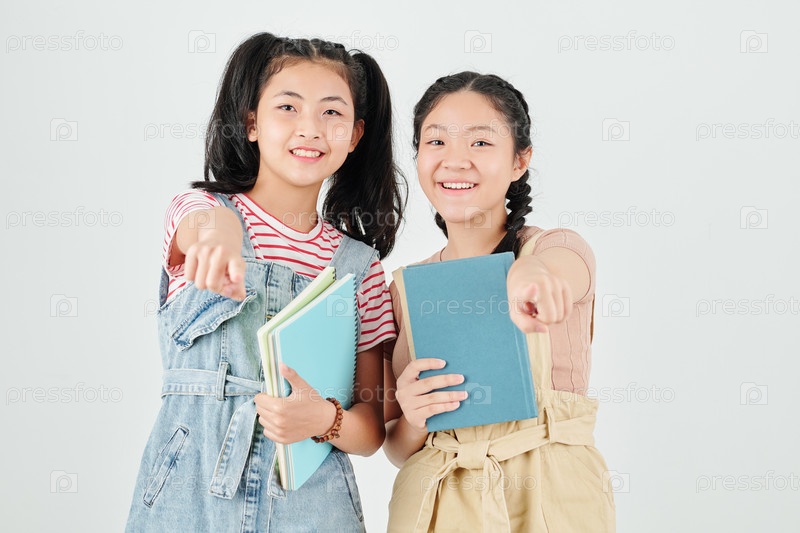 Веселые одноклассники с учебниками