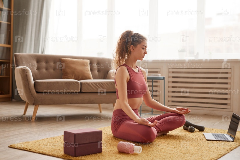 Женщина медитирует онлайн