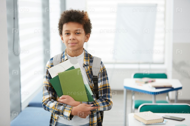 Улыбающийся афроамериканский мальчик в школе