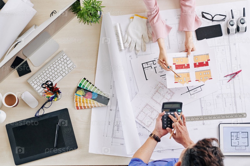 Инженеры обсуждают работы по отделке экстерьера