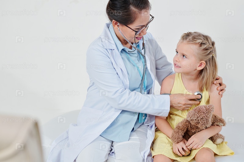 Педиатр проверяет звуки легких
