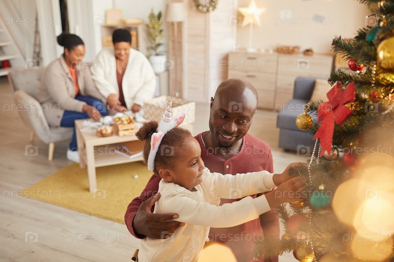 Счастливая афроамериканская семья украшает Рождество