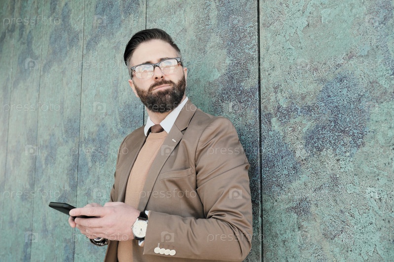 Бизнесмен с телефоном на открытом воздухе