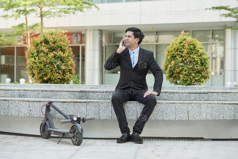Молодой предприниматель звонит по телефону