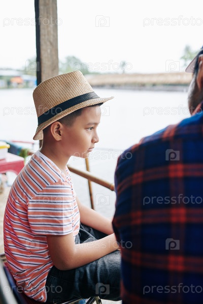 Мальчик смотрит на озеро