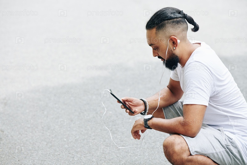 Вдумчивый мужчина проверяет телефон