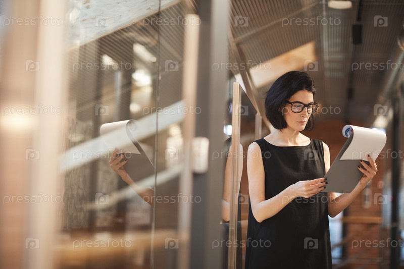 Деловая женщина, читающая контракт