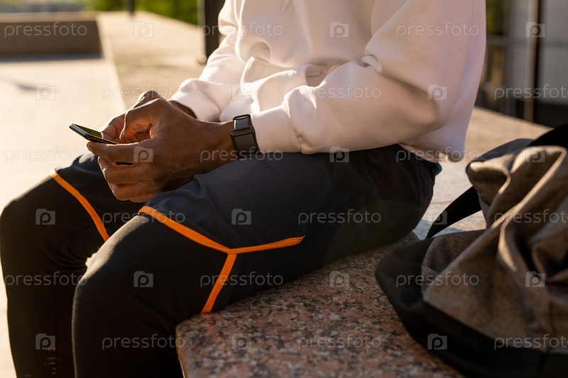 Руки молодого африканского мужчины со смартфоном, просматривающего онлайн-новости