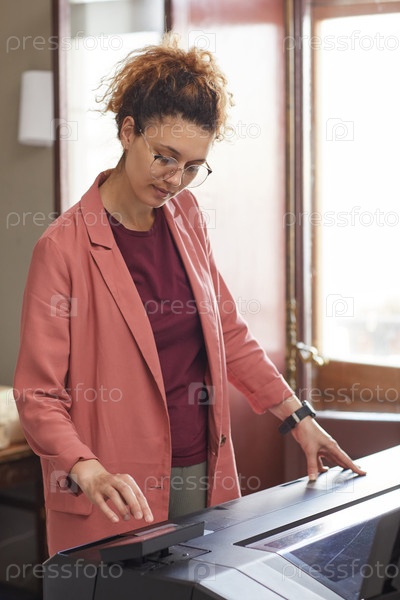 Женщина, работающая на печатной машине