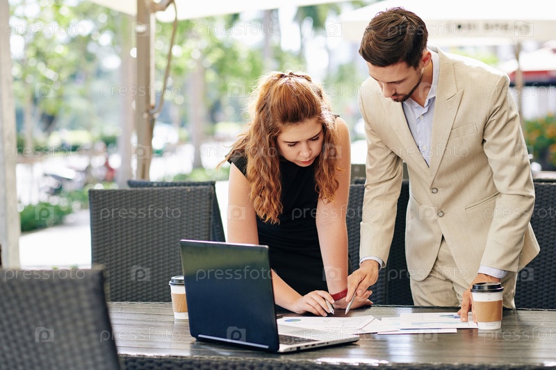 Бизнесмены обсуждают отчет