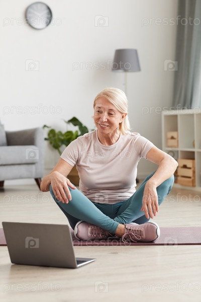 Женщина смотрит тренировки онлайн