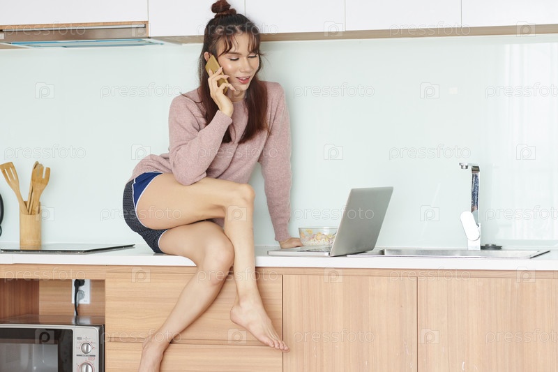 Позитивный ледибой разговаривает по телефону
