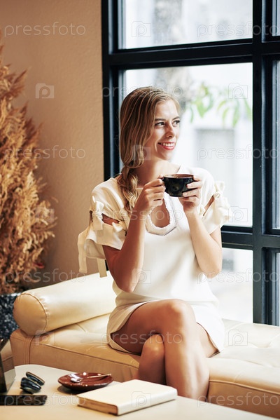Женщина пьет вкусный кофе