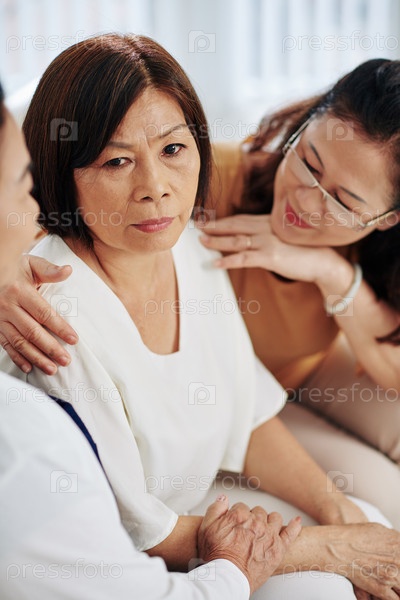 Печальная женщина встречается с друзьями